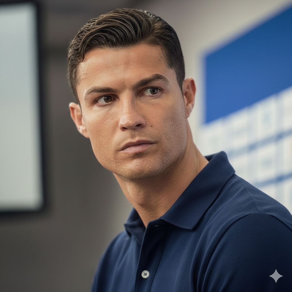 それを察したロナウド選手は、少し厳しい表情で周囲を見渡し
