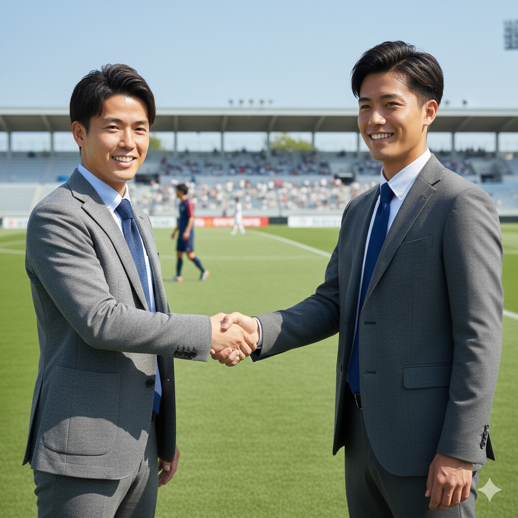 監督とは、サッカー部OBが弊社へ入社した "御縁" で